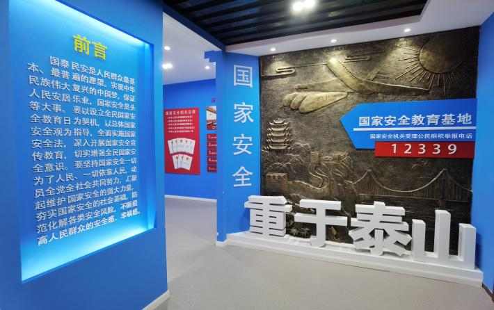 国家安全厅主要介绍了总体国家安全观、国家安全体系、国家安全相关法律、国家安全法治建设、身边的国家安全、国家安全发展大事记等等。目的是让党员、群众了解国泰民安是人民群众最基本、最普遍的愿望。实现中华民族伟大复兴的中国梦,保证人民安居乐业,国家安全是头等大事。