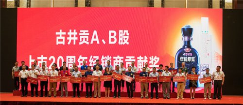 会议同时还向古井贡酒上市20周年来,对企业发展做出突出贡献的经销商特别颁发了“经销商贡献奖”,获奖的经销商将获得出国游的奖励。