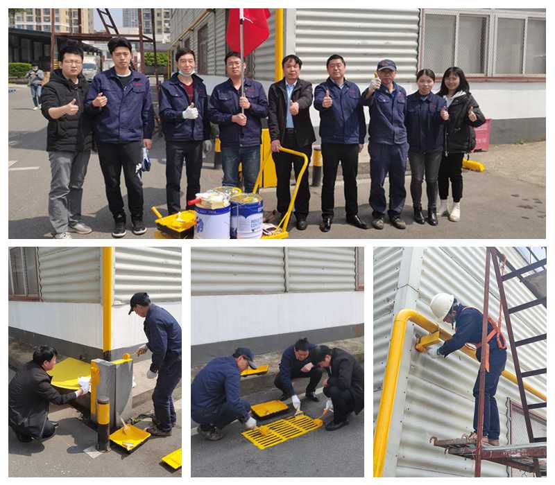 活动中,各党员、积极分子化身“油漆工”,对武汉厂区天然气管道、雨水井盖及标识进行了重新喷漆。深入基层、服务基层,在做好防护的前提下,大家轻装上阵,纷纷投入井盖刷漆、登高刷漆、地面防护等作业任务。经过几个小时的努力,厂区天然气管道及雨水井盖焕然一新,设施标识更加醒目。