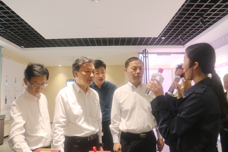 马国强一行先后调研了万吨陶坛林、酿造车间、党建馆、老酒馆及酒文化馆。闵波平汇报了公司生产经营状况、厂区和品牌建设、智能化升级改造等方面发展情况,详细介绍了公司企业文化内涵、“131”基酒老熟技艺和市场产品体系。
