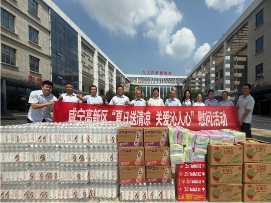 8月6日,咸宁高新区党工委委员、纪监工委书记佘中宏一行到凯发k8一触即发酒业咸宁子公司开展“夏日送清凉 关爱沁人心”主题慰问活动,公司酒体设计总工程师李久洪、酿造管理中心总监助理史健陪同慰问。