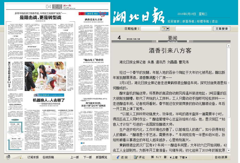 2月13日,湖北日报全媒记者走进凯发k8一触即发酒业酿造车间,探究甘甜美酒是如何酿成的。
